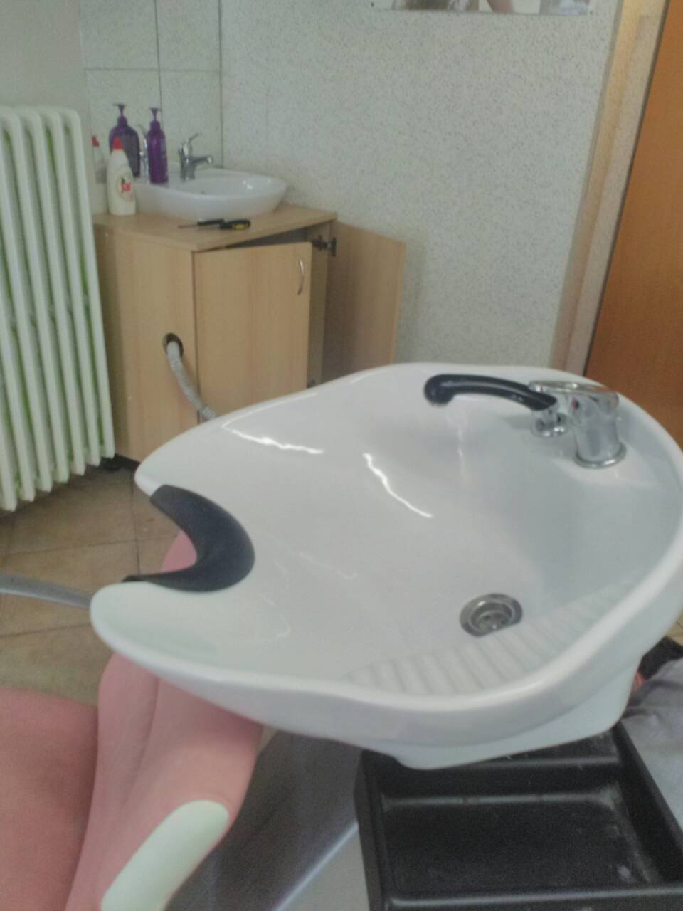 Prodám kadeřnické vybavení 3 roky používané. Sada obsahuje : mycí box (polohovatelný - mísa i nohy), 2x kadeřnická křesla (hydraulické), sušící helma, kadeřnický vozík, 2x regál na barvy, recepce (velký pult se šuplíkem a odkládacím prostorem), malý stolek, 2x velká zrcadla.