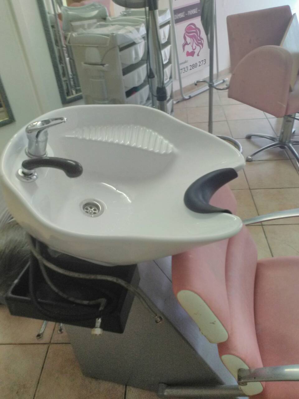 Prodám kadeřnické vybavení 3 roky používané. Sada obsahuje : mycí box (polohovatelný - mísa i nohy), 2x kadeřnická křesla (hydraulické), sušící helma, kadeřnický vozík, 2x regál na barvy, recepce (velký pult se šuplíkem a odkládacím prostorem), malý stolek, 2x velká zrcadla.